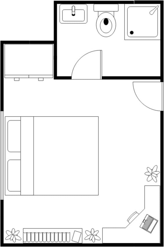 Our generously sized room provides ample space for relaxation and work. Whether you’re here for business or leisure, you’ll find a comfortable haven to unwind.